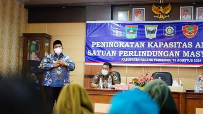 Dalam rangka meningkatan pengetahuan dan keterampilan anggota Satlinmas, Satpol PP Prov. Sumbar melaksanakan kegiatan Peningkatan Kapasitas Anggota Satuan Perlindungan Masyarakat bagi anggota Satlinmas Kabupaten Padang Pariaman di Aula Puskesmas Kabupaten Padang Pariaman pada hari Kamis (19/08). Peserta kegiatan Peningkatan Kapasitas A